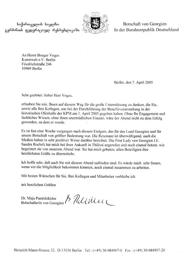 (Empfehlungsschreiben der Botschaft von Georgien)